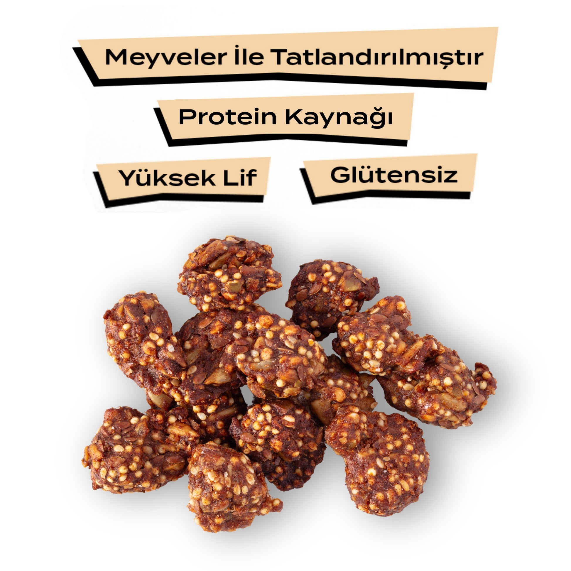 Katkı ve koruyucu içermez. Doğal içerikler, temiz formül ve filizlendirmenin besleyici gücüyle daha işlevsel bir atıştırmalık deneyimi sağlar.