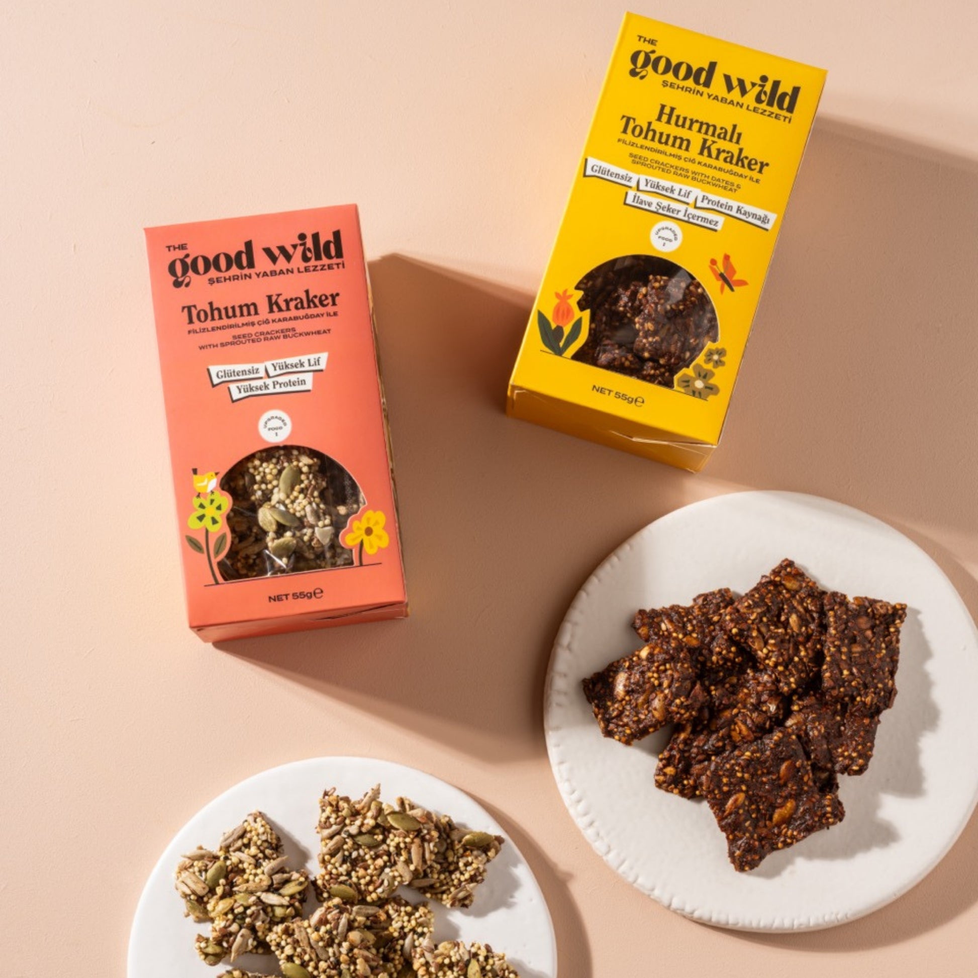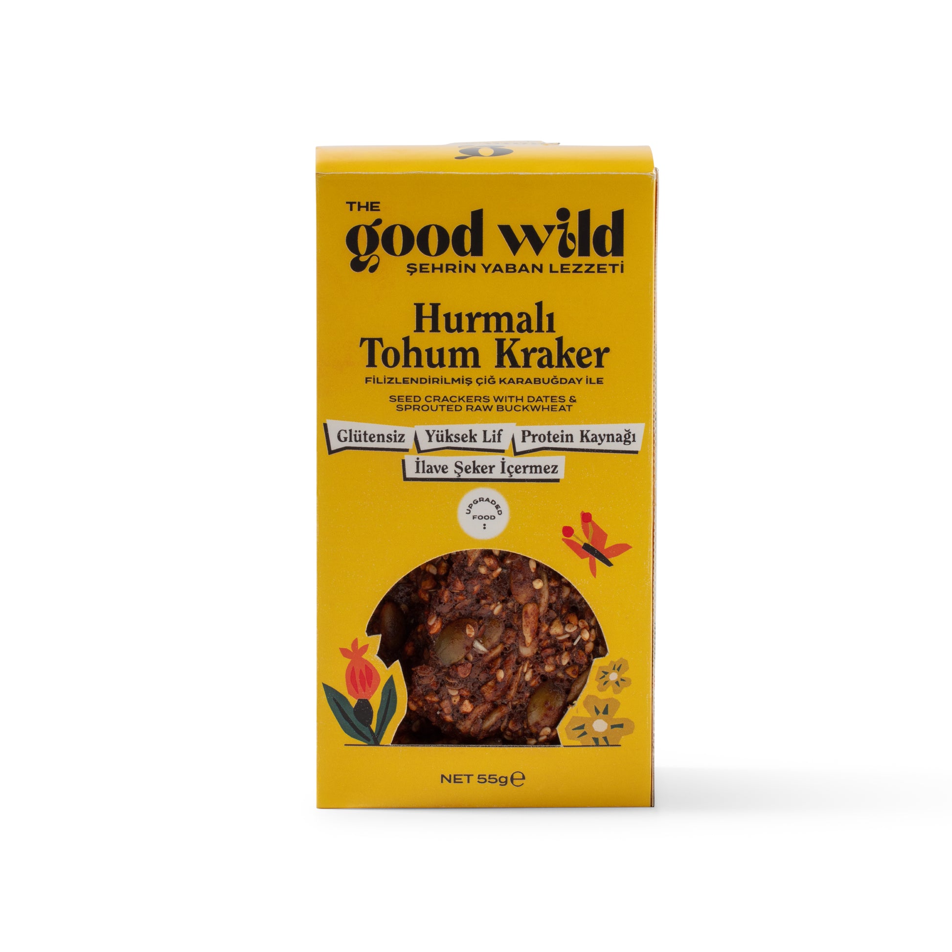 Filizlendirilmiş çiğ karabuğday, hurma püresi, darı, kabak çekirdeği, ay çekirdeği, keten tohumu ve susamın harmanlanmasıyla hazırlanan Hurmalı Tohum Kraker, yağlı tohumlar, hurma ve filizlendirilmiş bakliyatların eşsiz birlikteliği!